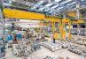 Європейський козловий кран побудований на козлові крани. який складається з прольотних конструкцій, механізму підйому і перетину, тривалого руху механізму та електричної системи управління. Тільки одна сторона крана тримає посадкову ногу, що рухається по рельсам на землі. Інша сторона з кінцевою каретою біжить на стіні майстерні. У порівнянні з нормальним козловий краном. це хороший вибір, щоб заощадити інвестиції та простір.